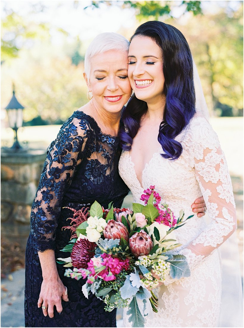 Kelly arrived with the tips of her beautiful jet black hair dyed purple, and her ring had a lone sapphire sitting beside her diamond on her ring. Her bevy of girls were dedicated to her, almost as much as Kelly was to her sweet Momma who made a strong and beautiful appearance after recently recovering from cancer treatment. I loved seeing them together on the wedding day – and as a mother of a daughter it warmed my heart. As for Steve – well, he was busy being Steve. I have never, ever laughed as hard on a wedding day as I have during my time with him (which is saying a lot because I can find humor in anything). He selected a bright blue velvet jacket, but his vibrancy didn’t stop there – he was as hard to wrangle as a heard of kittens (and I mean that in the best way.) In fact, we had to make a deal – if Steve would give me one shot of his crew behaving themselves I would let them free to “run around the property how they want.” Little did I know that they would LITERALLY take off running like a heard of school kids headed to the secret tree clubhouse as I chased after. Thank you to these two captivating people who help remind me that weddings are meant to be personal, and people meant to be enjoyed.
